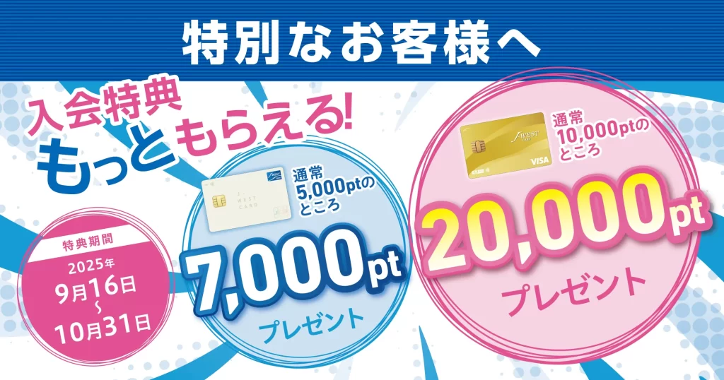 ・J-WESTカード:2,000P(条件を満たせば別途通常特典5,000P付与)