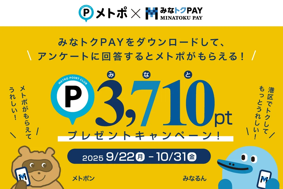 みなトクPAY×メトポアンケートに回答してメトポを当てよう!キャンペーンを実施します!~100名様に3,710("みなと")ポイントが当たる~|東京メトロ