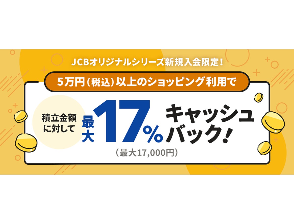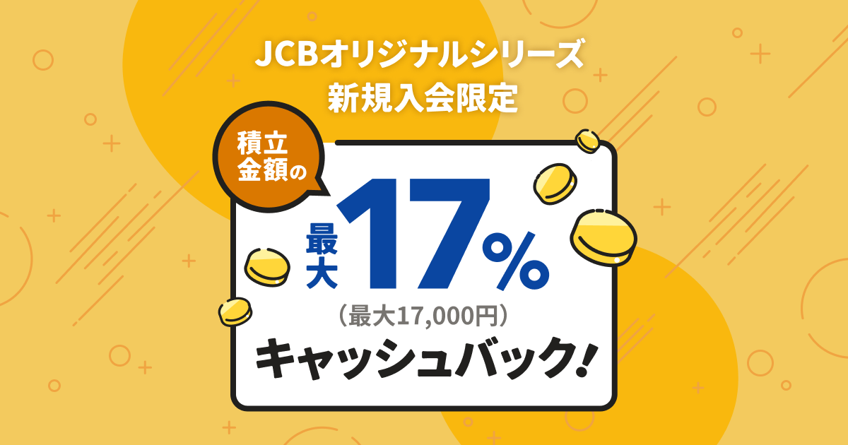 JCBオリジナルシリーズ新規入会者限定!JCBのクレカ積立利用で最大17%(最大17,000円)キャッシュバック