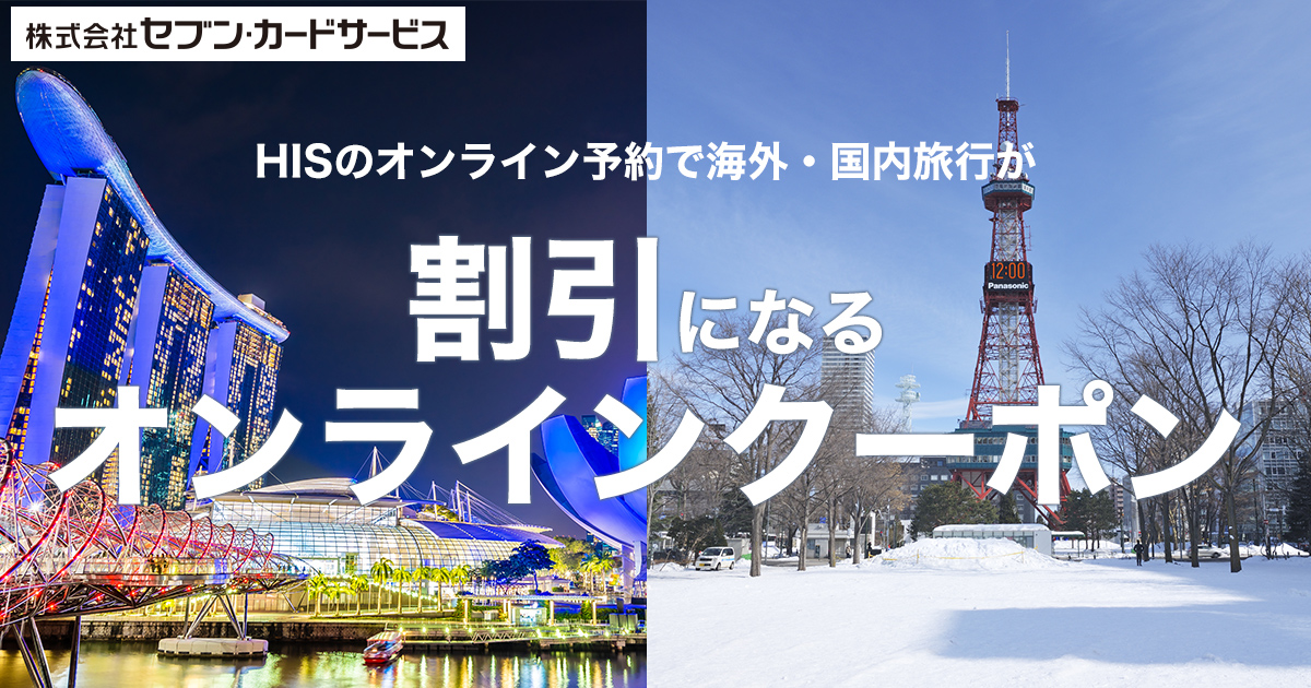 HIS海外旅行オンライン予約・HIS国内旅行オンライン予約にて、セブンカード・プラス/セブンカードでの決済時に対象商品が5%オフになるクーポンを配布