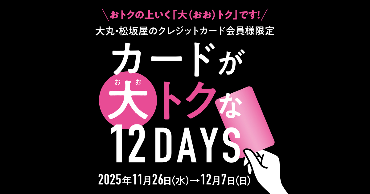 対象カード:大丸松坂屋カード、さくらパンダカード、大丸松坂屋ゴールドカード、大丸松坂屋お得意様ゴールドカード、博多大丸孔雀カード、博多大丸お得意様ゴールドカード