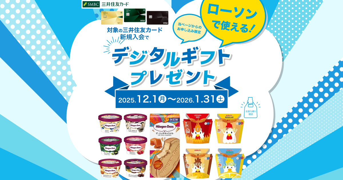 当ページ限定!対象の三井住友カード新規入会でローソンで使えるデジタルギフトプレゼント!|クレジットカードの三井住友カード