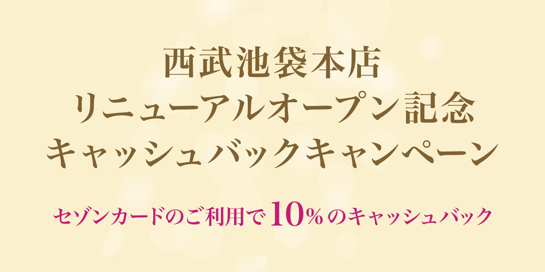 【西武池袋本店限定】リニューアルオープン記念!対象のセゾンカードご利用で10%キャッシュバック! ※要エントリー | クレジットカードはセゾンカード