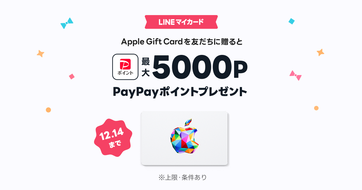 Apple Gift CardをLINEの「友だちに贈る」とPayPayポイント最大5000Pプレゼント!