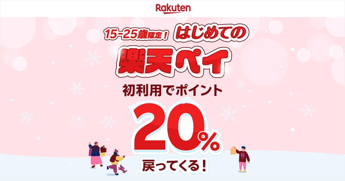 15歳から25歳限定!U25はじめての楽天ペイ 楽天ペイ初利用で20%ポイント戻ってくる!