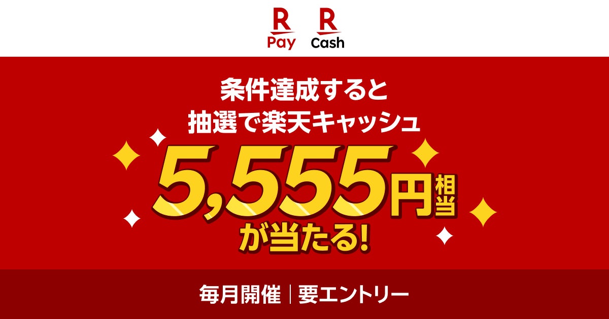 キャンペーン期間中にエントリーのうえ、東京アプリから東京ポイントを楽天キャッシュに合計1,000ポイント以上交換された方に、抽選で555名さまに楽天キャッシュ5,555円相当を進呈いたします。