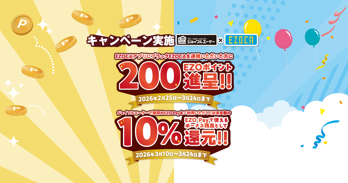 【ジョイフルエーケー×EZOCA】キャンペーン実施中!(第1弾)2026年2月25日~3月24日、(第2弾)2026年3月10日~3月24日