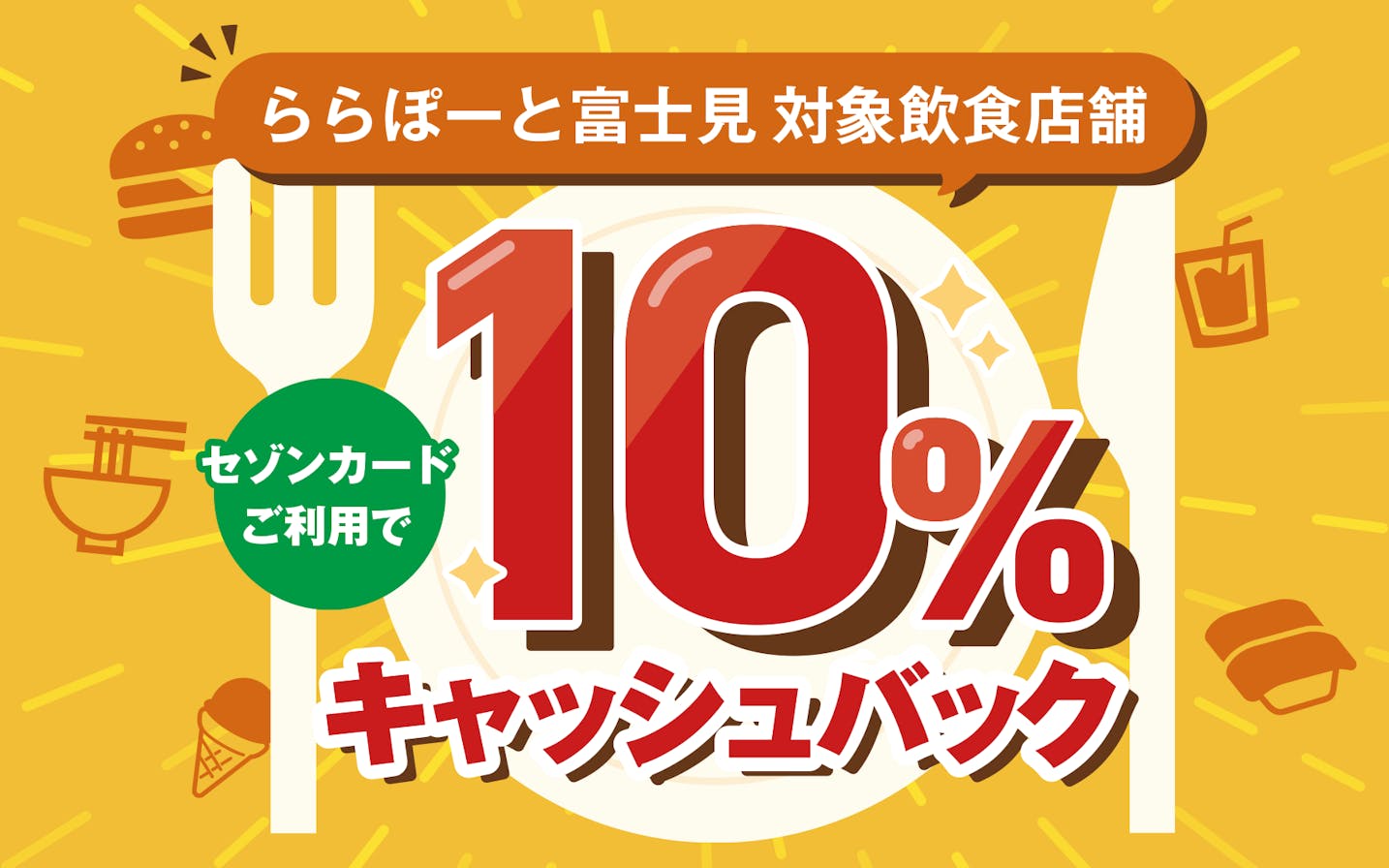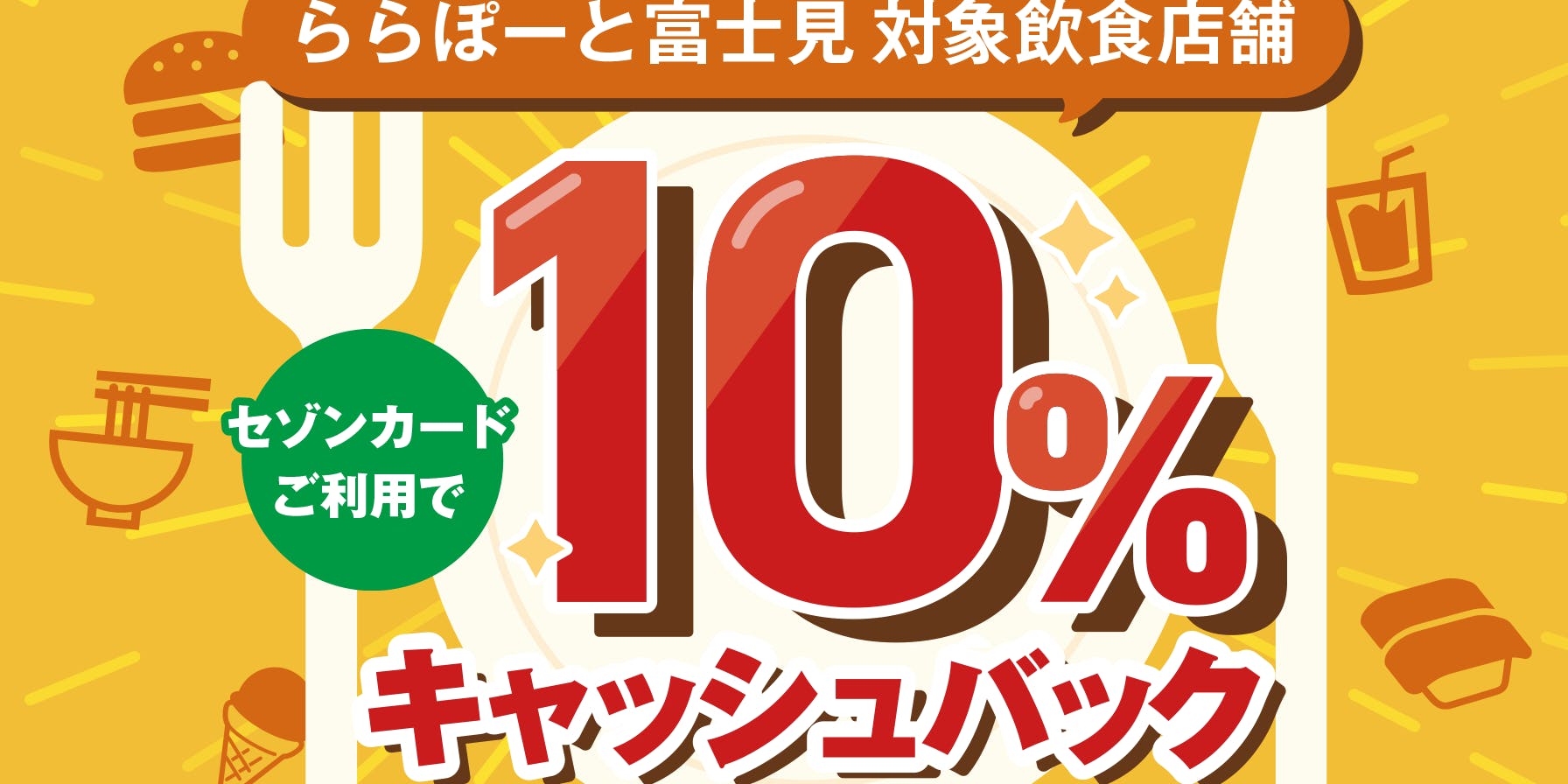 【土・日・祝日限定】「ららぽーと富士見」対象飲食店舗にて10%キャッシュバック!※要エントリー | クレジットカードはセゾンカード