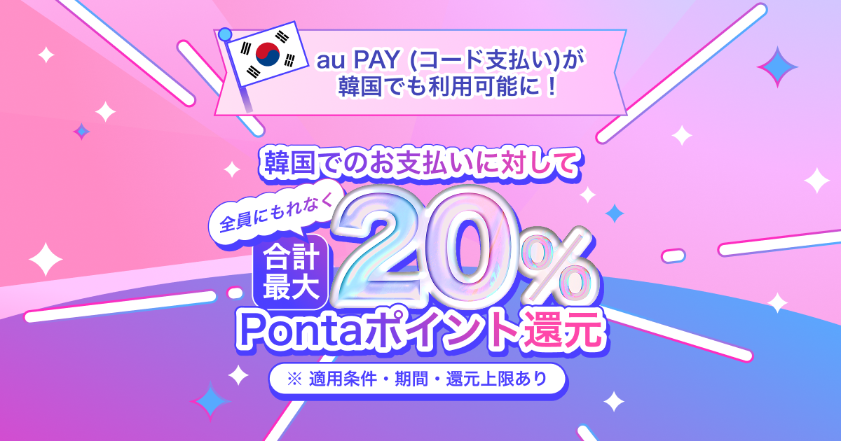 韓国でau PAY(コード支払い)が使えるように!今なら合計最大20%のPontaポイント還元キャンペーン実施中。※条件あり