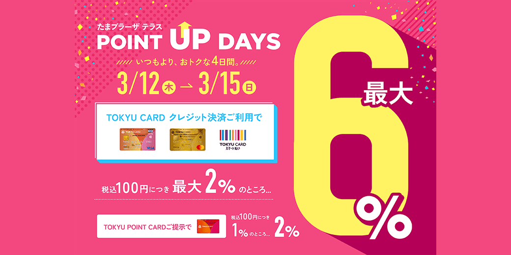 【おトクな4日間!】POINT UP DAYS 開催! | イベント&ニュース | たまプラーザ テラス
