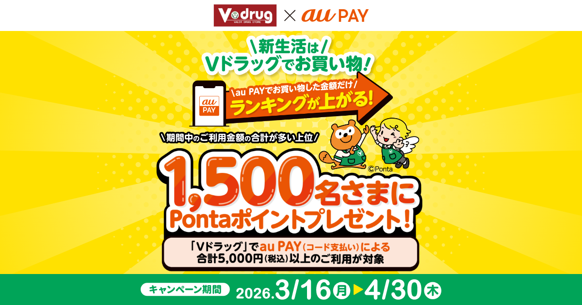 Vドラッグ × au PAY | Pontaポイントプレゼントキャンペーン