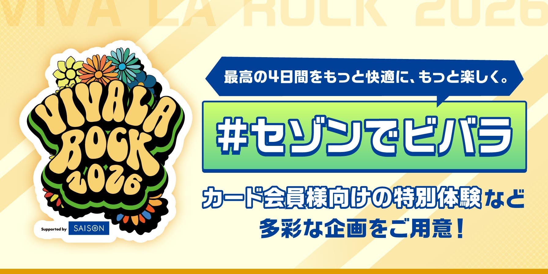 株式会社クレディセゾンのプレスリリース(2026年3月16日 14時00分)ビバラ史上初の野外開催!クレディセゾン、「VIVA LA ROCK 2026 Supported by SAISON」に特別協賛