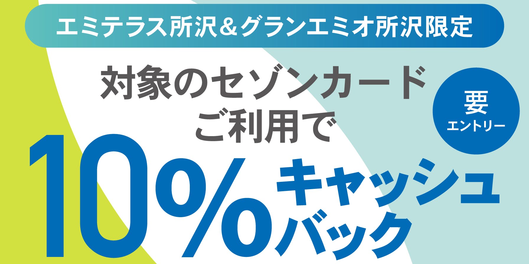 対象のセゾンカードをエミテラス所沢・グランエミオ所沢で利用すると10%をキャッシュバック