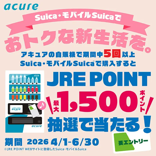 登録したSuicaでacureの自販機を使っておトクな新生活を!キャンペーン | キャンペーン | JR東日本のポイントサービス - JRE POINT