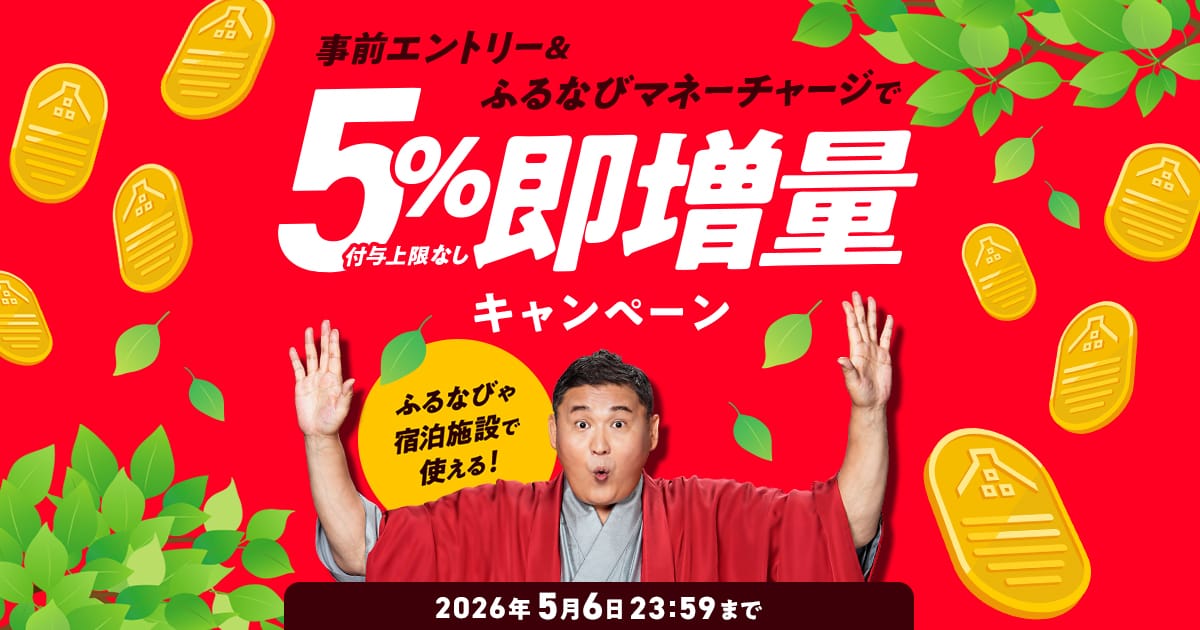 5%即増量!付与上限なし!2026年新緑のふるなびマネー即増量キャンペーン 事前エントリー&ふるなびマネーチャージでふるなびマネーが増量!